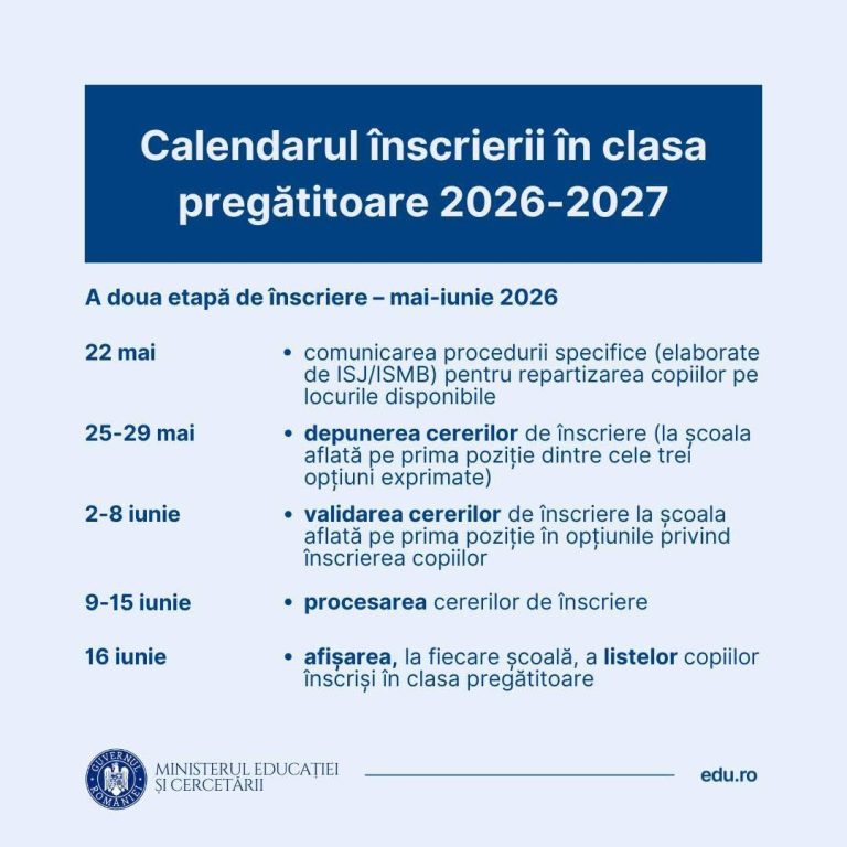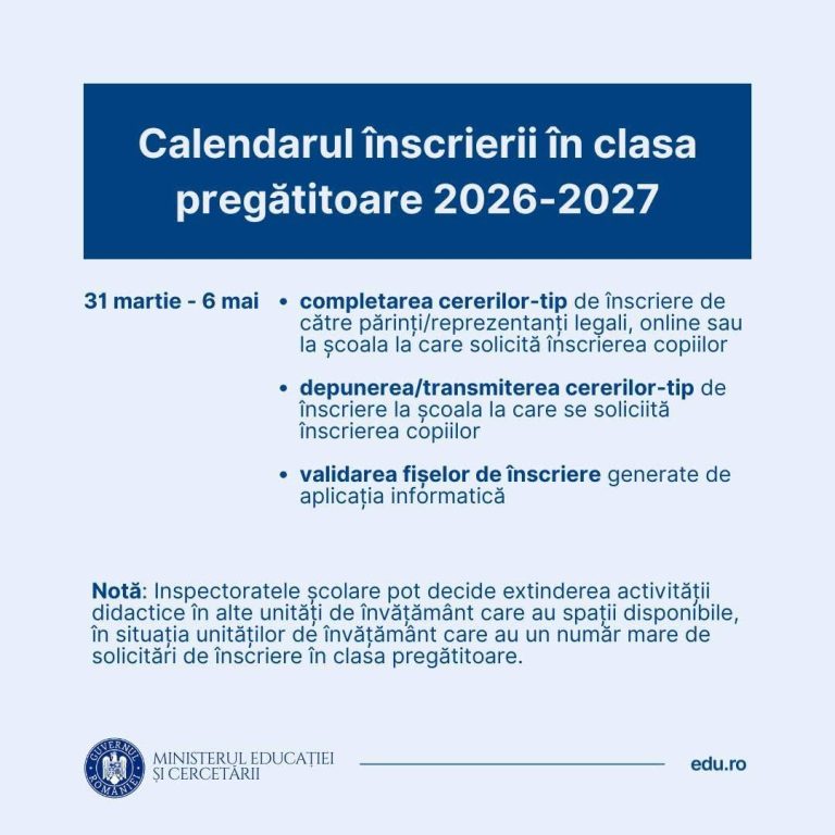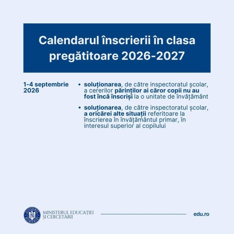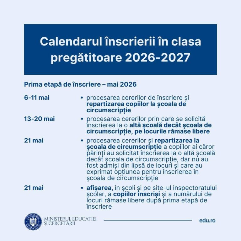 CALENDAR INSCRIERE CLASA PREGATITOARE 2026-2027